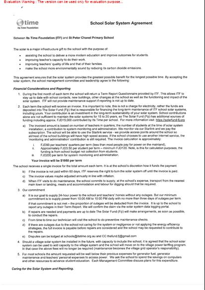 (8) The fuel savings in the teachers' homes are not included in the calculation of financial savings for the school. Although teachers are asked to make a small contribution each term (FJD70) for their now 24-hour power and this goes to the school to buy more education resources.