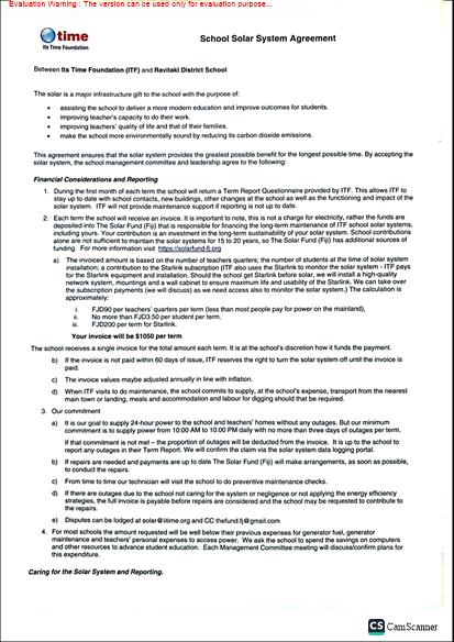 (8) The fuel savings in the teachers' homes are not included in the calculation of financial savings for the school. Although teachers are asked to make a small contribution each term (FJD70) for their now 24-hour power and this goes to the school to buy more education resources.