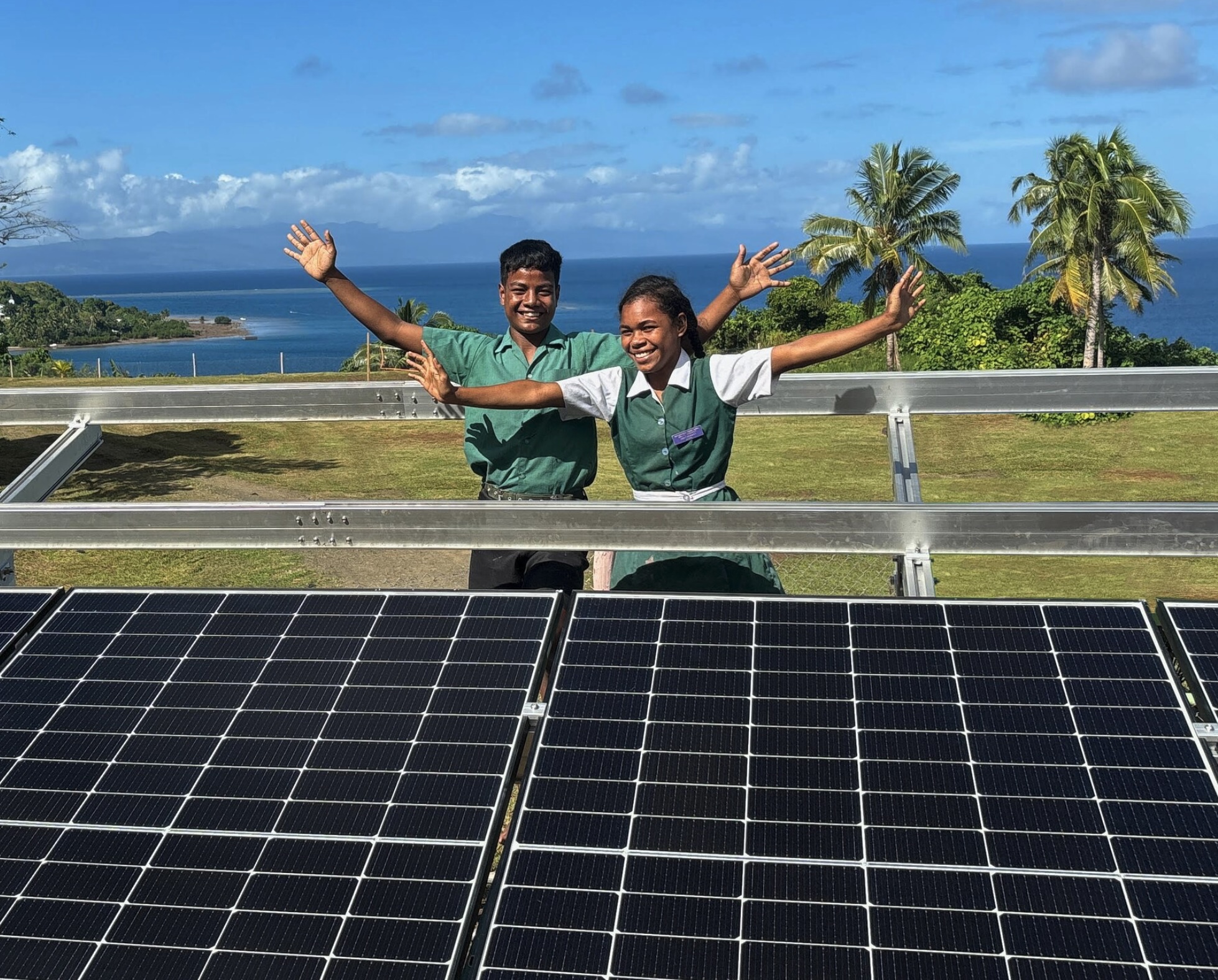 (2) The fuel consumption of teachers' homes varies considerable between homes and over time. Their sources of energy varies from their own small generators to shared generators, still some use kerosene for lighting and some small solar (often failing) for lights and charging. Recently on Beqa Island two of the 7 households at one school were each using 10 litres of fuel per week and some were using very little. So, we have chosen the conservative underestimate of each household saving of 2 litres per week (approx. 5 kgs of CO2).